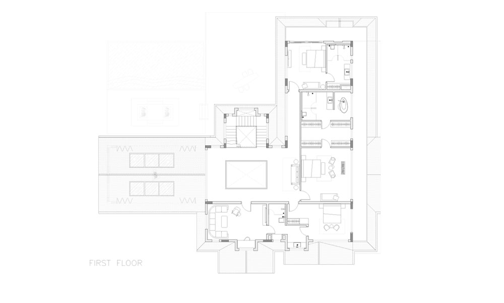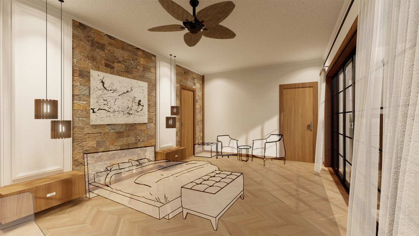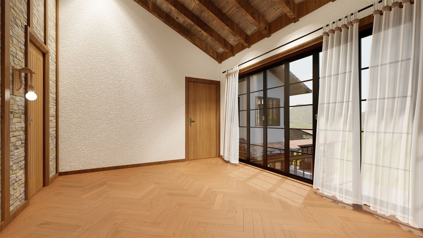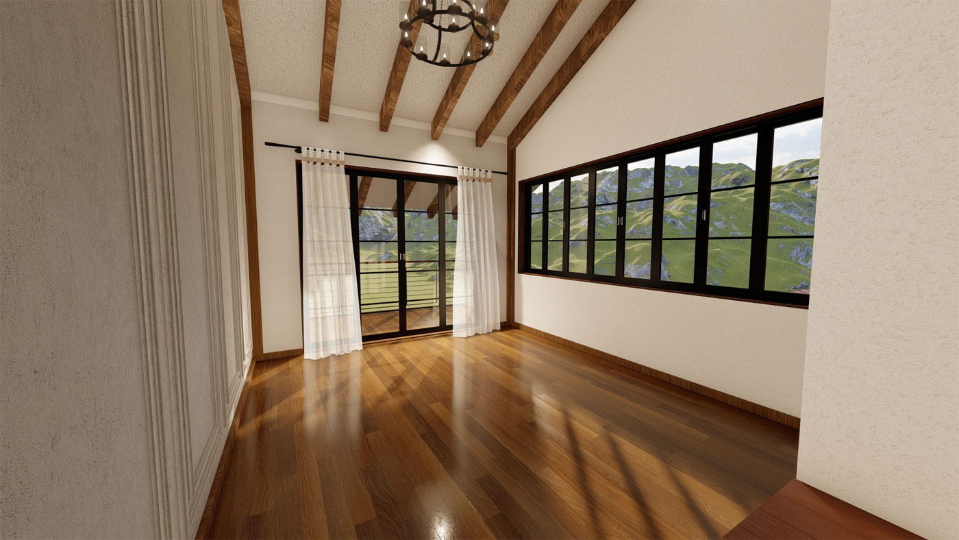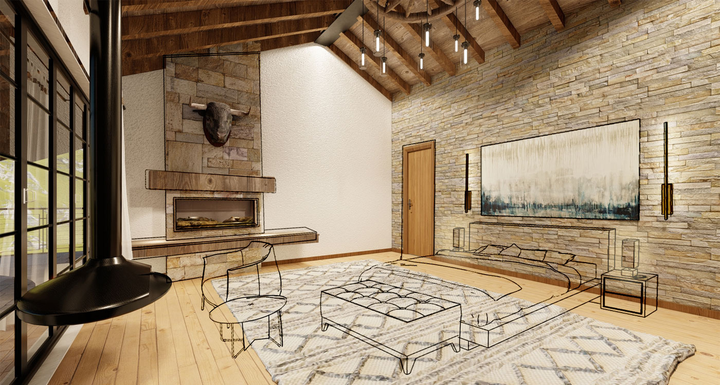 Inside, stone walls, warm wood, and patterned tiles enrich the palette without competing with the views. Every detail is shaped to echo the surroundings, making the home feel less like an escae within the mountains and more like a continuation of them.