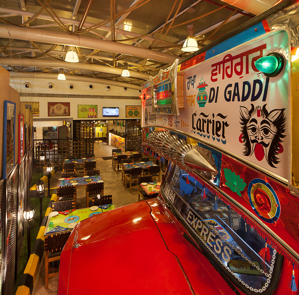 Transforming India’s truck culture into an all-encompassing sensory experience, this jaunty restaurant creates a spatial immersion celebrating highway dhabas.