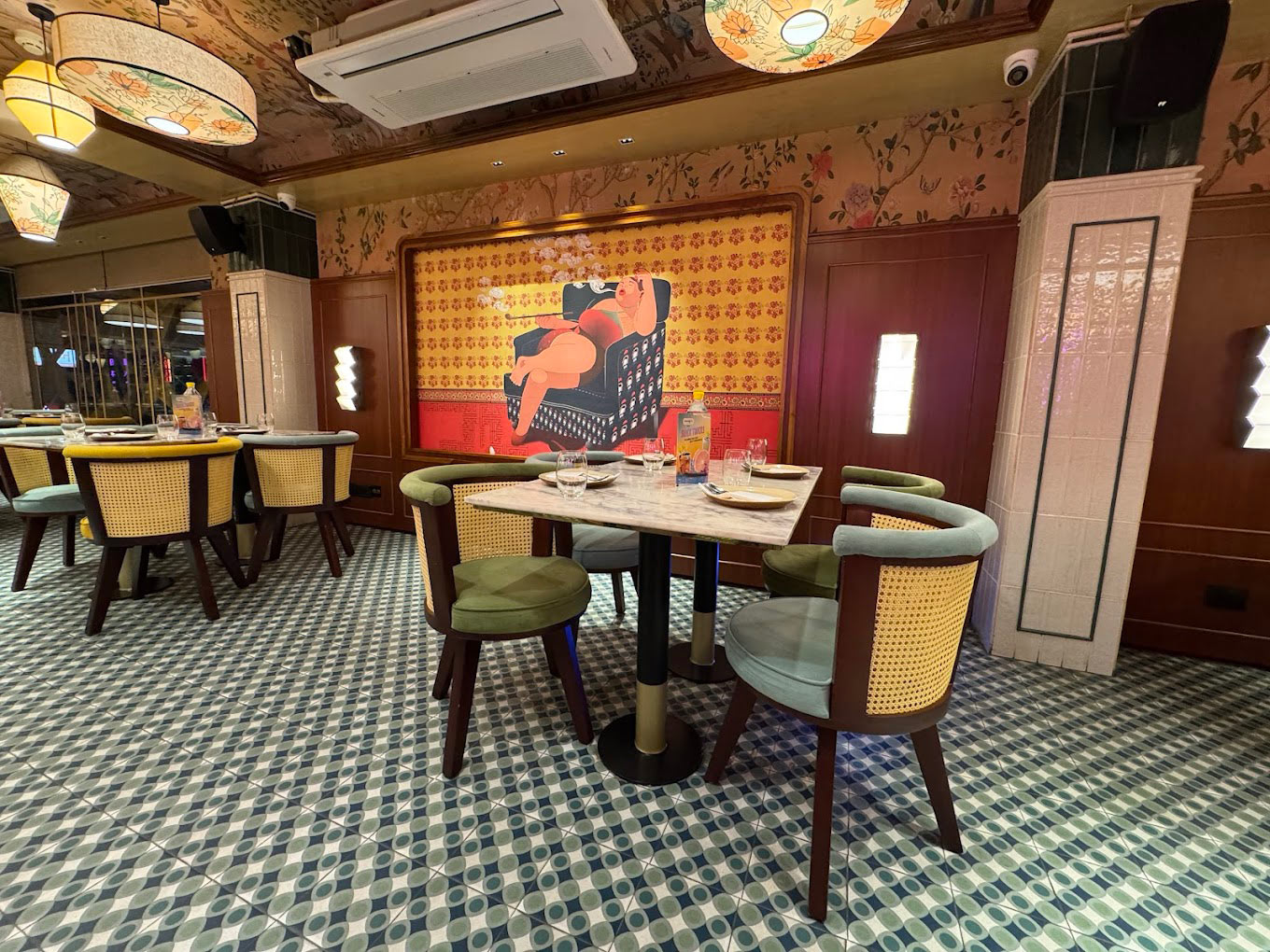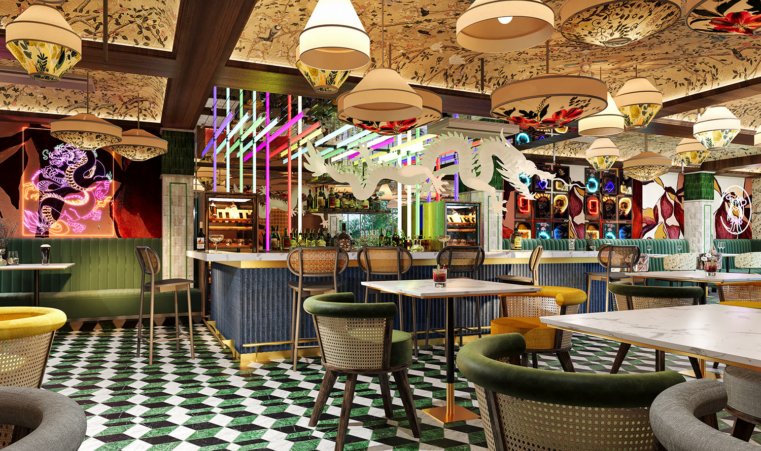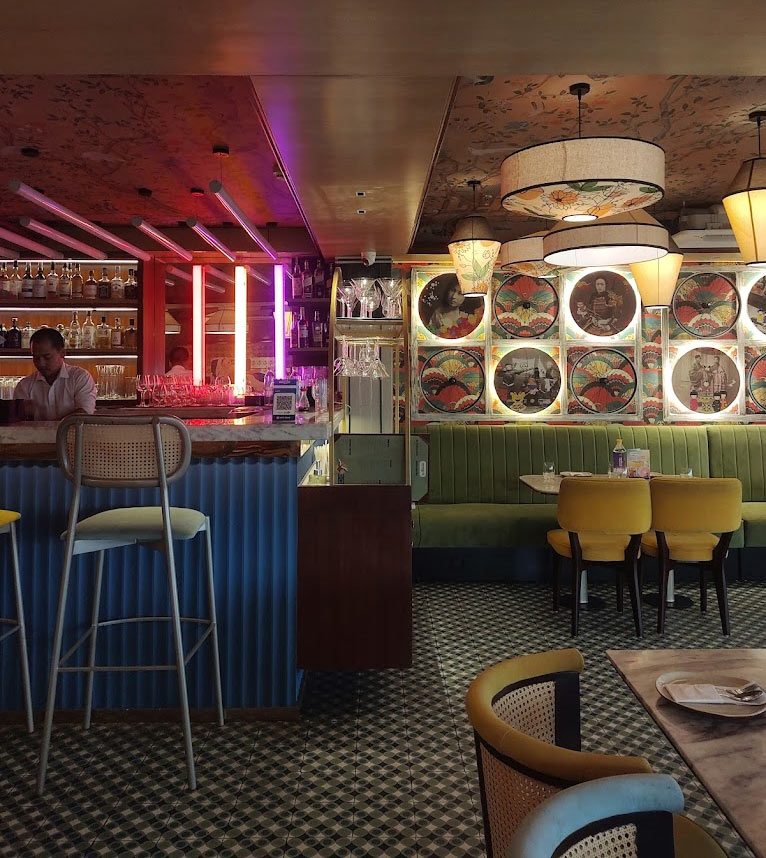 Rich in its layers and palette, this Asian restaurant embraces a maximalist design approach through a mix of vintage botanical