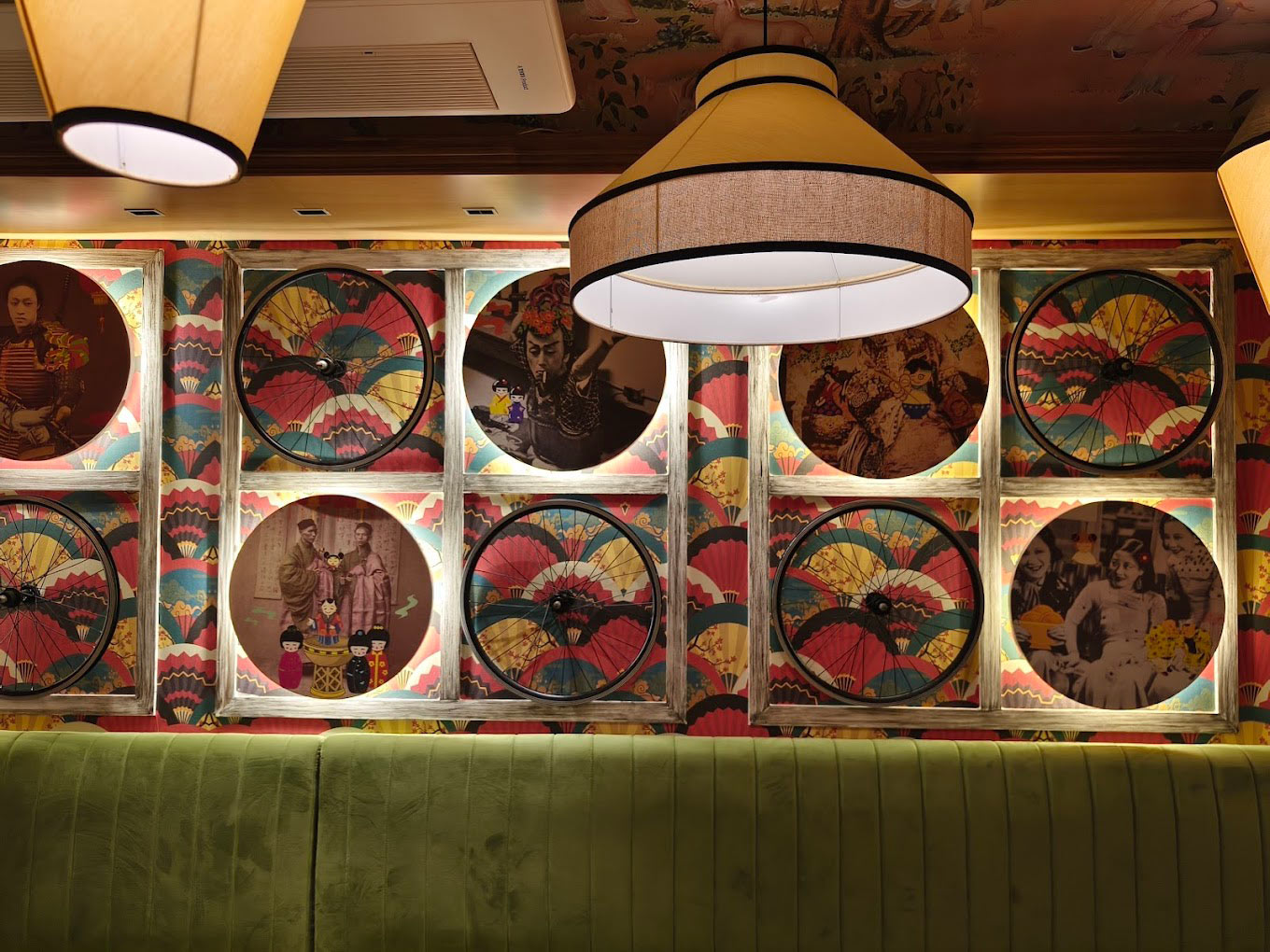 Most distinctive of all gestures, is the installation of pendant lights suspended from the ceiling with hand-painted floral motifs. This curated composition references to traditional Asian lantern festivals while adding to the eclecticism.