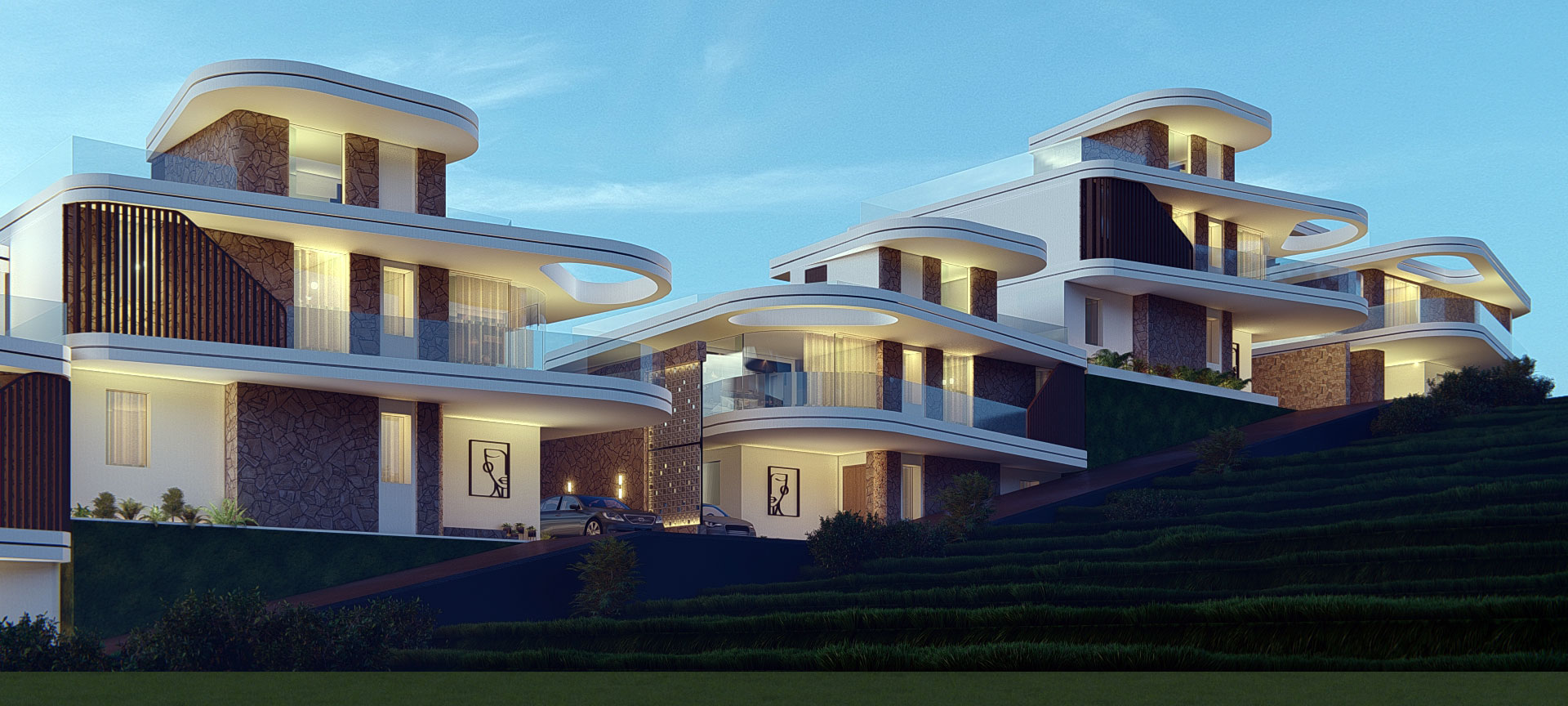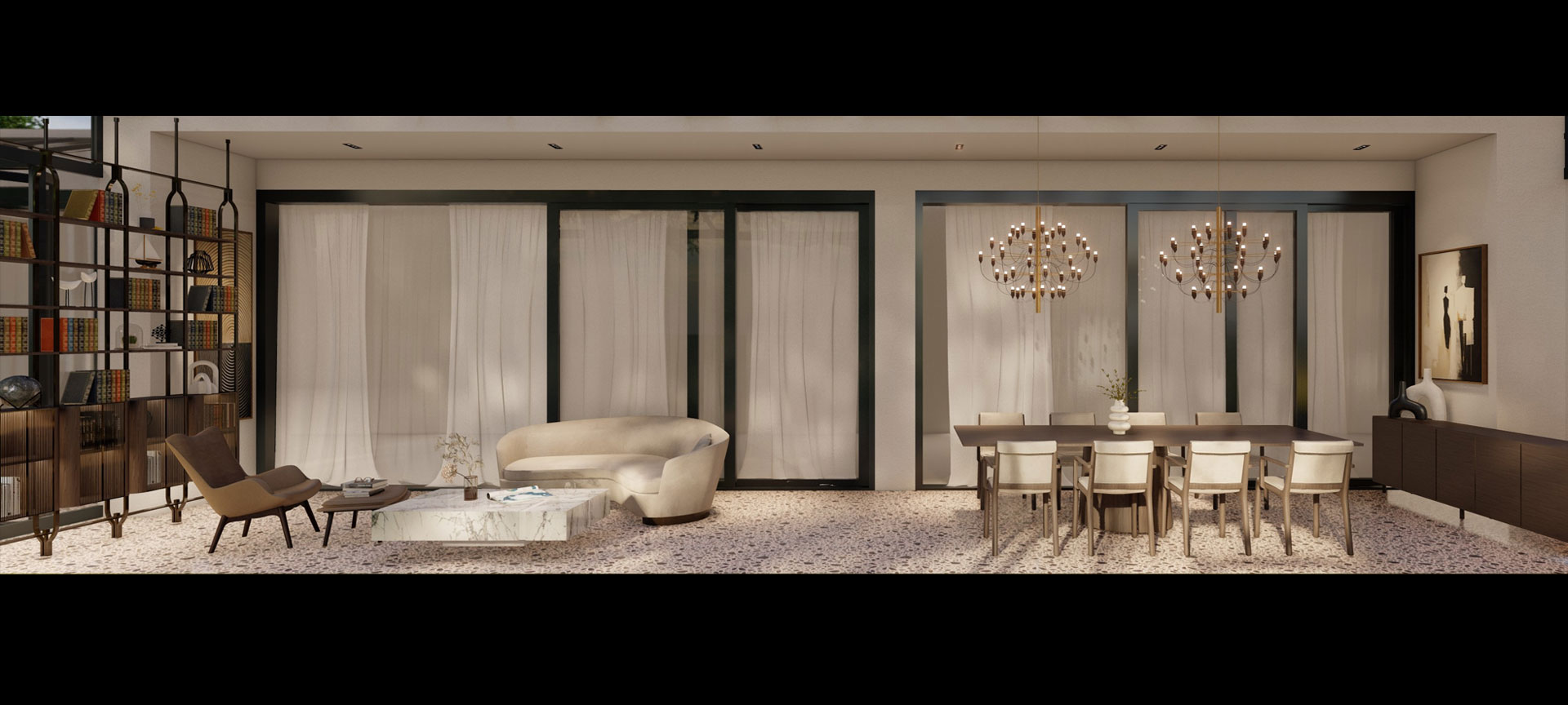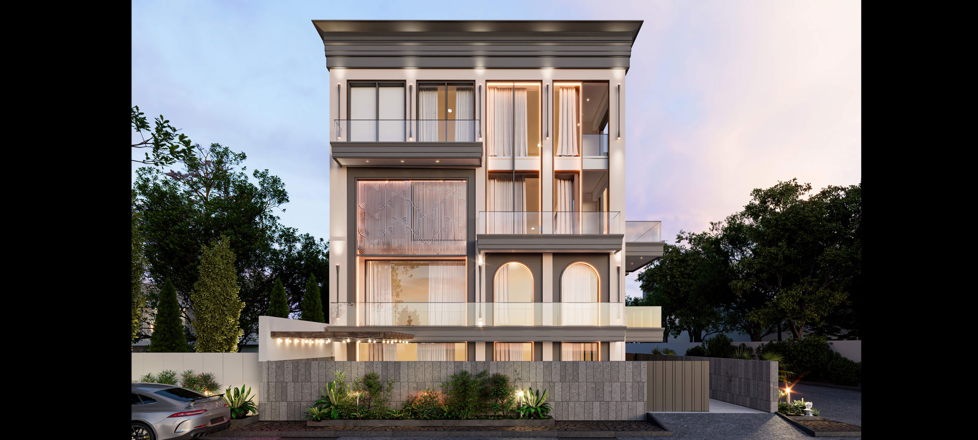This six-bedroom penthouse sits on a confident edge, where dramatic lighting, rich wood finishes, and bold materials create a setting of bold luxury. Book-matched marble