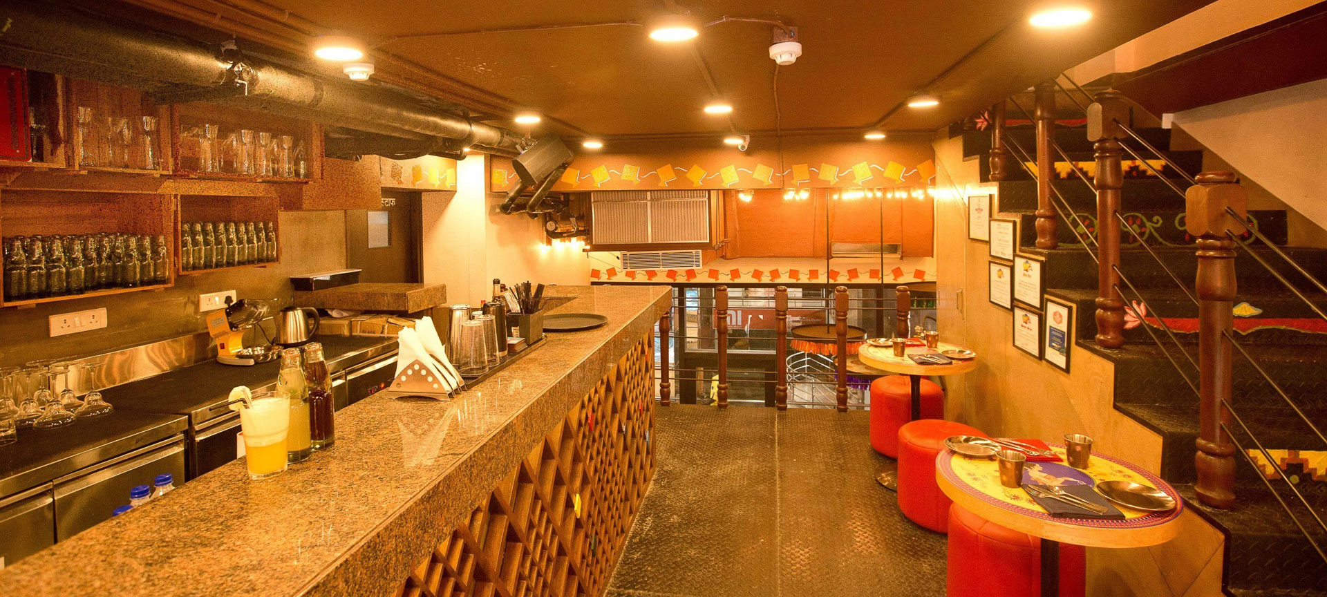 This restaurant interiors captures the spirited pulse of Indian street culture through a layered approach uniting craft, colour and volume. The design unfolds within a