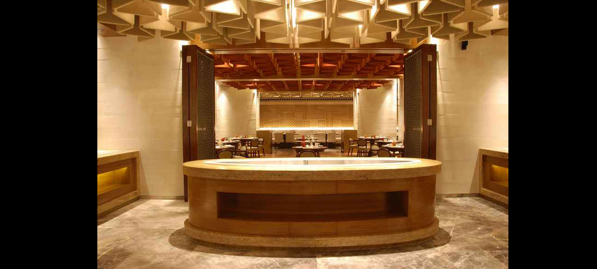 Through muted tones and a refined palette, this upscale hotel in Kathmandu, establishes an interpretation of luxury dining. It balances warmth with sophistication across a