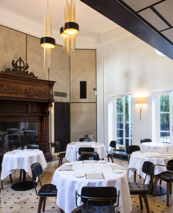 The restaurant is designed as a confluence of the old and unapologetic new. Occupying a historic London building, the space